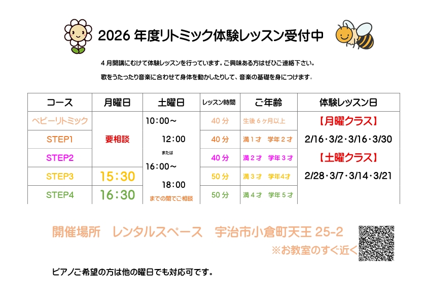 2026年度リトミック生徒募集中